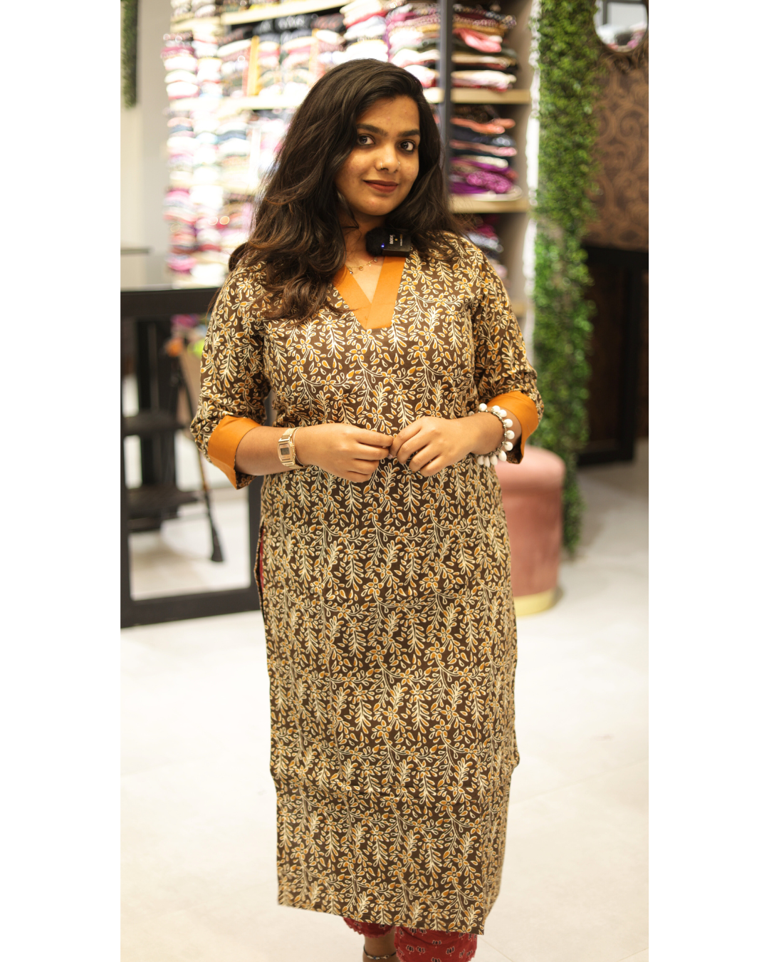 AS 39- Daily wear Cotton Kurti - Dark Mustard Yellow